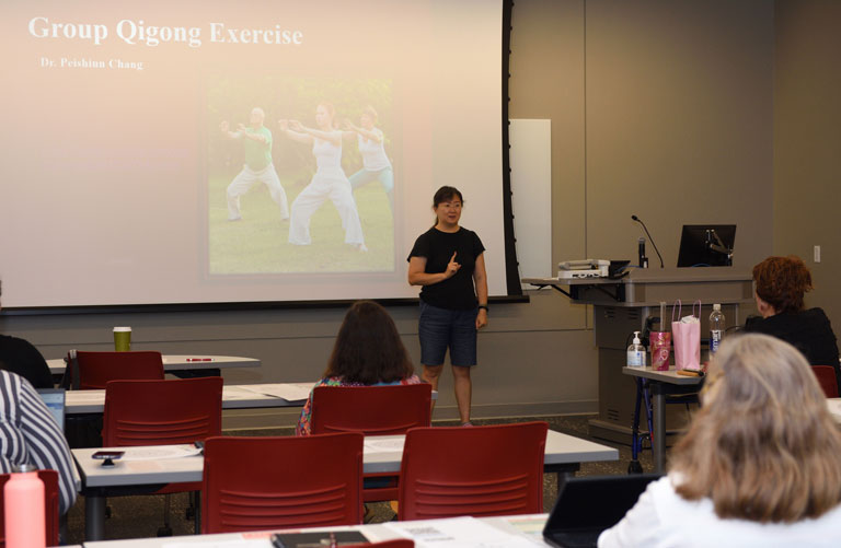 My research focuses on using Qigong (pronounced chee-gong) exercise, a mind-body exercise, to promote physical and emotional well-being in older adults. Qigong exercise consists of deep controlled breathing, moving meditation, and gentle body movements. The reason that I am passionate about Qigong is that it makes me keep doing this exercise. Before studying Qigong exercise, I was not an exercise person! Qigong movements are so easy to do and learn. It makes me feel calm and relaxed every time I do it, while keeping me physically active. Through my studies, the potential of Qigong exercise in promoting older adults’ health is not just for physical function, but also emotional well-being. I believe that Qigong exercise can be easily adapted in communities to become a powerful tool that keeps older adults healthy and independent at home.