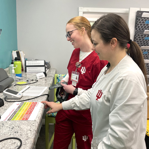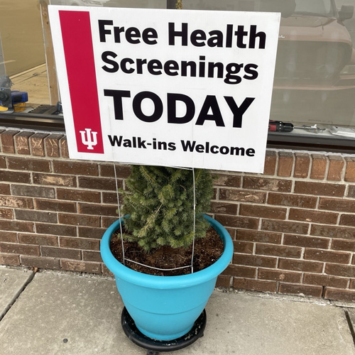 We did a free health screening, consisting of vital signs and glucose readings, in the parking lot of the Lawrence County Health Department and had a great turnout! The Hope Resource Clinic Mobile Unit also joined IU School of Nursing in these efforts. Going into spring 2021, the health care screenings progressed with the help of the Center for Rural Engagement purchasing equipment and expanding our services to include cholesterol screenings.