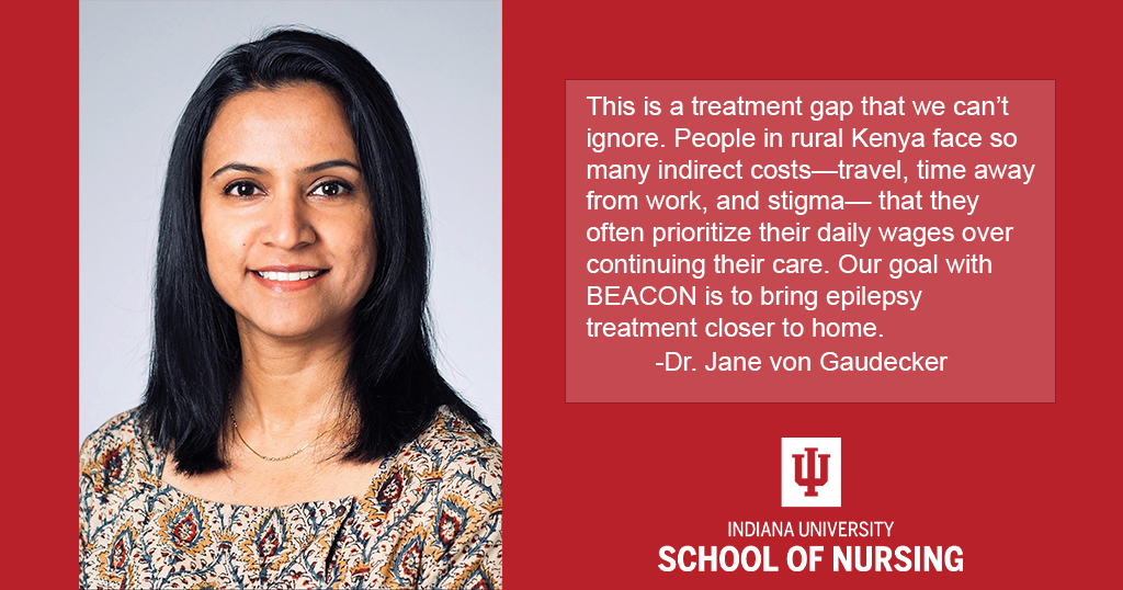 Epilepsy remains a significant global health burden, affecting 1% of the world’s population, with the highest rates in sub-Saharan Africa. In Kenya, over 80% of people with epilepsy live in low-resource settings, where access to care is often limited. To address this challenge, Dr. Jane von Gaudecker, Ph.D., RN, associate professor at the Indiana University School of Nursing, is leading a groundbreaking study, “Bridging the Treatment Gap by Expanding Access to Care for People with Epilepsy in Kenya” (BEACON). Supported by a $2.4 million grant from the National Institute of Neurological Disorders and Stroke and the Fogarty International Center, the study seeks to improve epilepsy care in western Kenya, with Dr. Chrispine Owuor Oduor, MBChB, MMed, from Moi Teaching and Referral Hospital in Kenya, serving as co-principal investigator.
