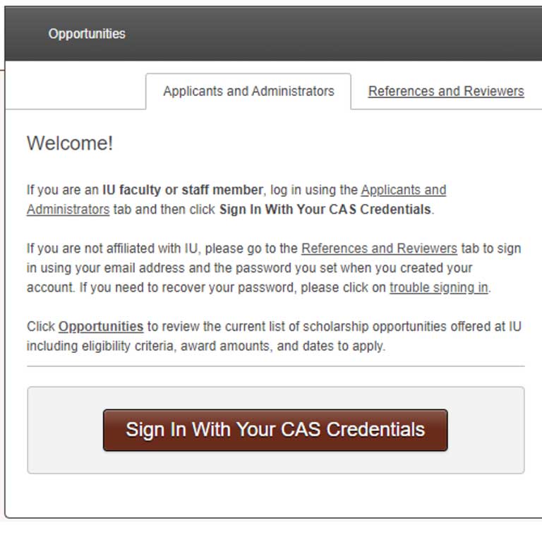 Once you receive your log-in credentials (approximately 3-4 days after requesting a new IU Computing account) you will be able to sign-in to access IU Scholarships through the Blackbaud Award Management (BAM) tile inside of one.iu.edu.