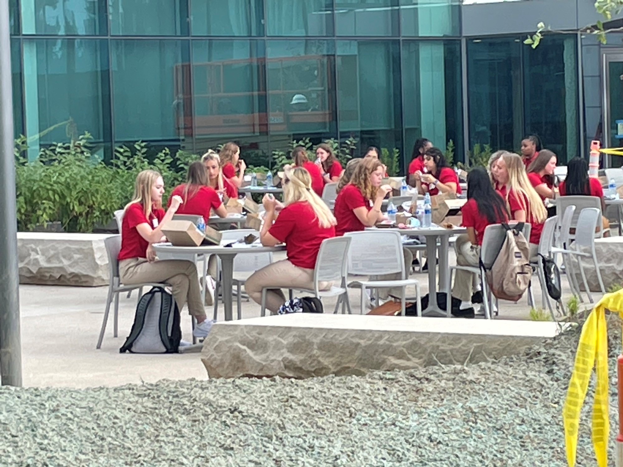 The Class of 2024 enjoying a lunch break with their new classmates and future friends.