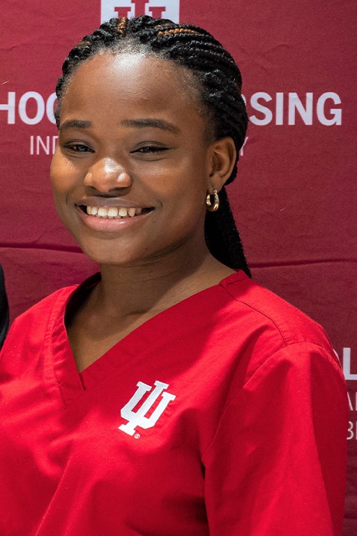 Junior nursing student Theophilia Denadi joined Sydney as one of our fall Excellence Award winners, receiving the IU Bloomington Excellence in Leadership of Nursing Diversity Initiatives scholarship. Born and raised in Benin, West Africa, Theophilia is being recognized for her efforts in promoting IUSON BL’s diversity initiatives. “Diversity in nursing school makes the learning environment more comfortable for students from every background,” she says. “Establishing such an environment encourages them to feel comfortable in their classes, eager to learn, and ready to help others in their communities. Representation matters not only for the community, but for the future of the world.”
