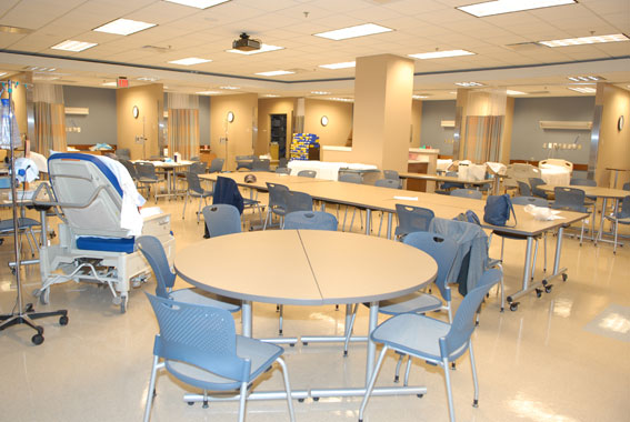 Inside you’ll find lab staff ready to assist students and faculty in the skills area with manikins, equipment, and supplies. They also assist teams during simulations.